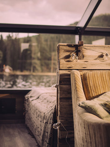 Surrounded by forest, mountains and open water, this is an experience designed for complete stillness without compromising on comfort. The lodge features a glass enclosed bedroom with a double bed, a wood burning stove, a sofa for quiet evenings inside, and an LPG powered combustion toilet.