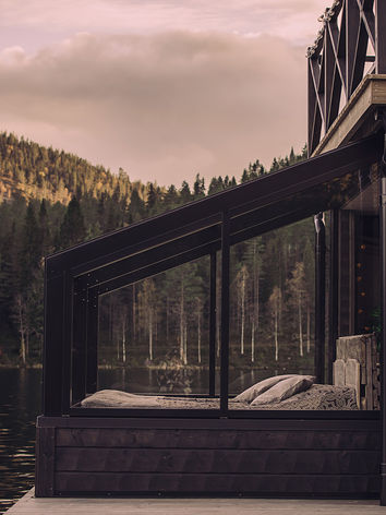 Spend the night in one of Sweden's most unique accommodations. Surrounded by wilderness, right on the lake, with a sauna on the roof and a bedroom under the stars.